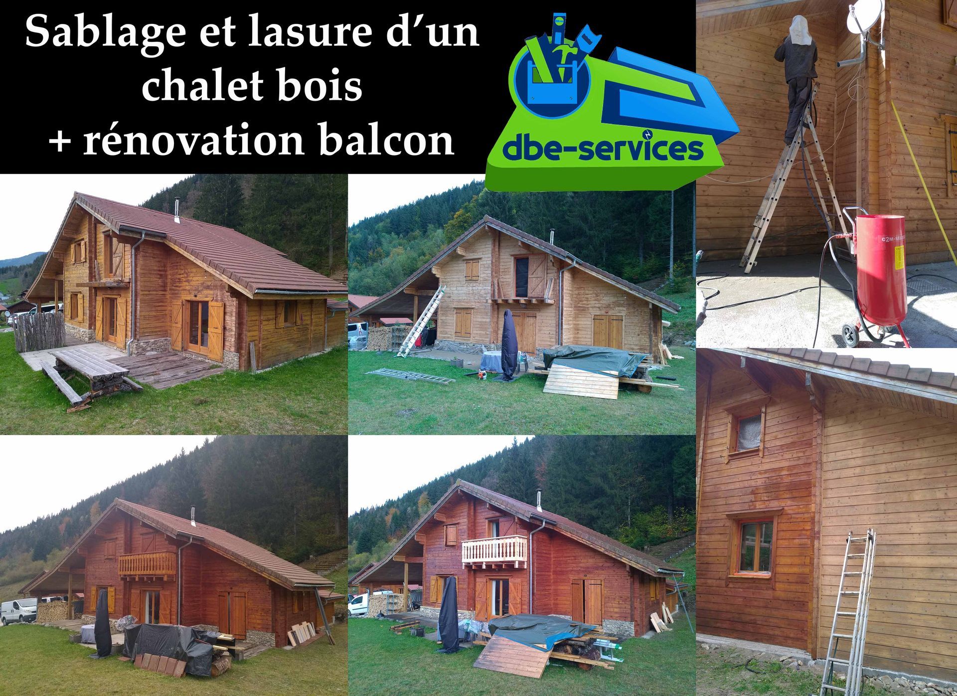 - Rénovation extérieur de chalets bois, ponçage ou sablage puis lasure ou saturateur
